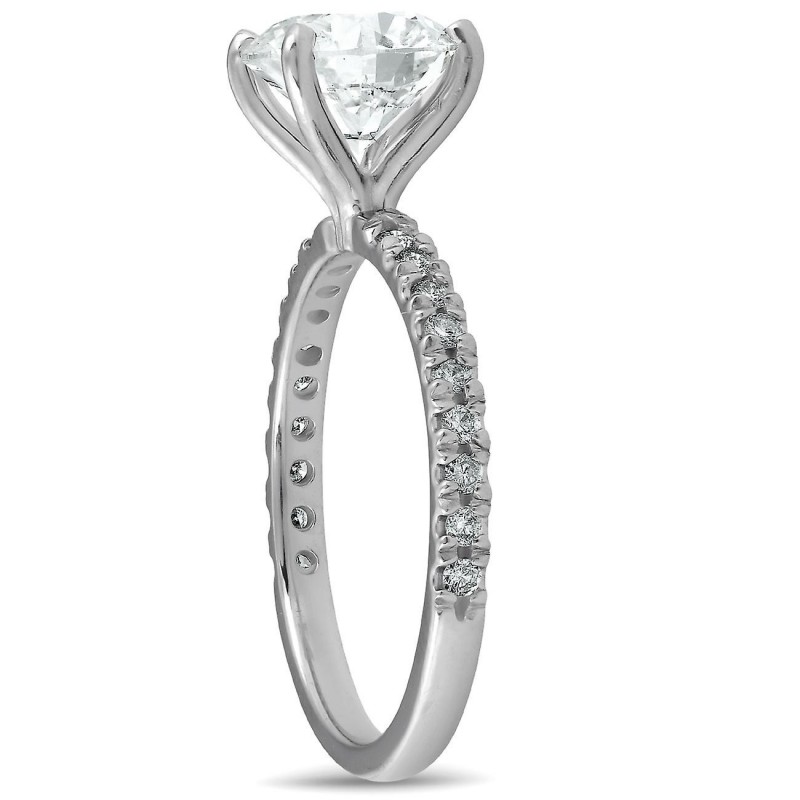 2 1/3 ct white French pave diamond solitaire engagement ring in 14k white gold